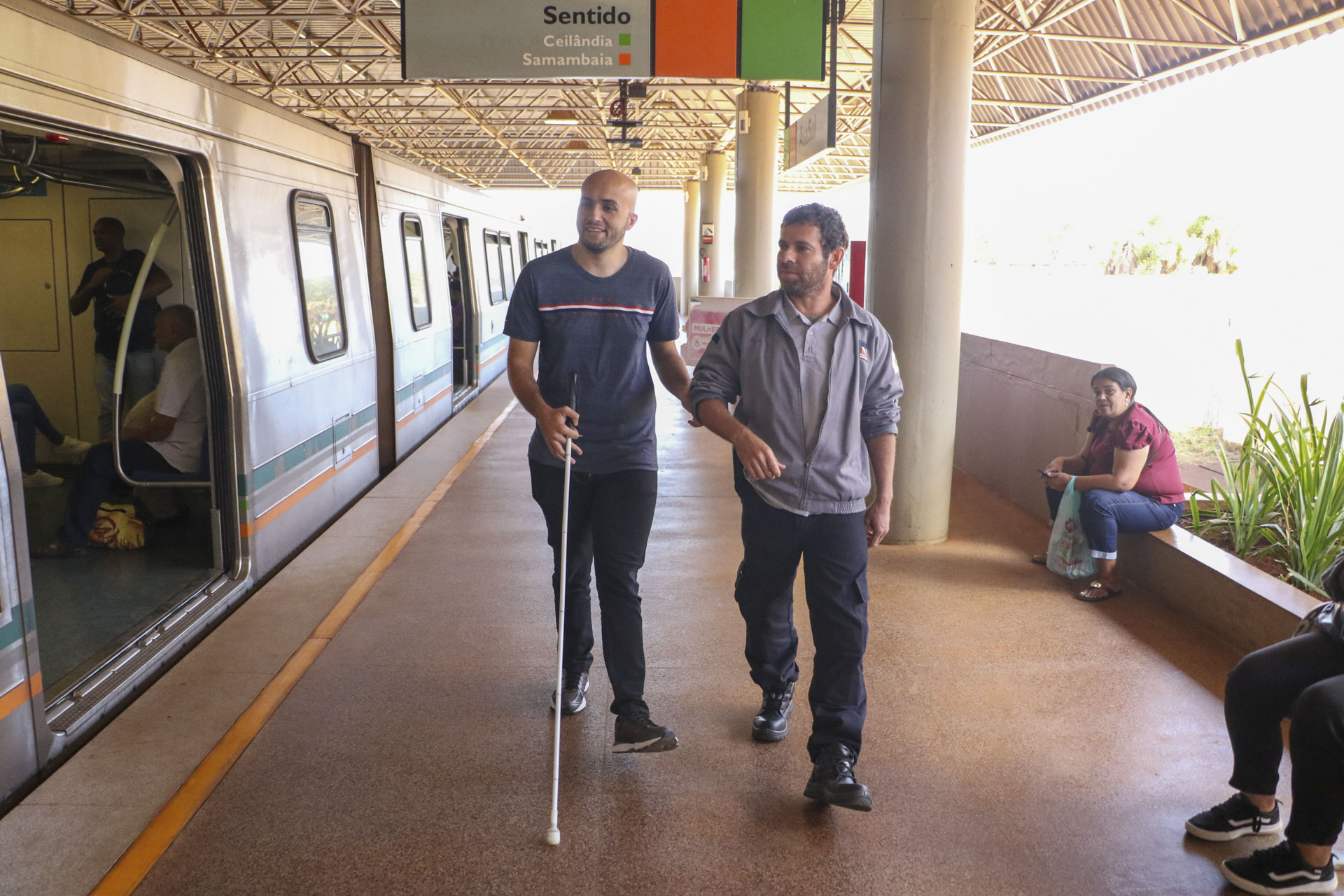 Sempre que o advogado e paratleta de goalball Jeferson Conrado dos Santos, 29, chega à Estação Asa Sul do Metrô-DF, é cumprimentado pelo nome por funcionários que controlam o acesso do público. Usuário deste modal de transporte há muitos anos, Jeferson tem deficiência visual, o que torna essencial o auxílio de agentes da empresa para se locomover, embarcar e desembarcar.