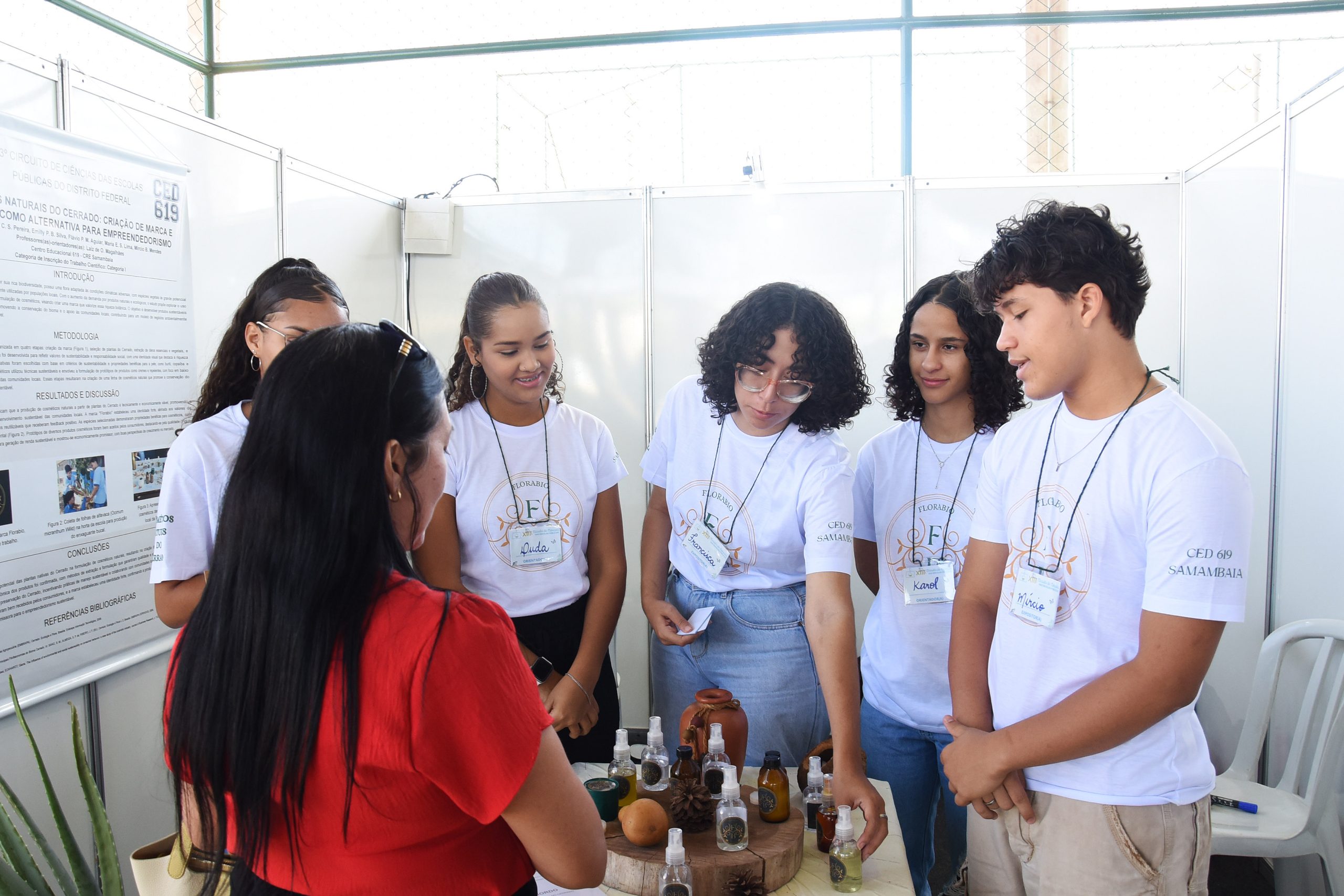 Enquanto a Plenarinha é voltada para os alunos da educação infantil, o Circuito de Ciências apresenta projetos científicos feitos pelos alunos do ensino médio e dos anos finais do ensino fundamental. Aluna do Centro Educacional (CED) 619, Ana Karolina Sales, 17, apresentou no seu estande a proposta de desenvolver cosméticos naturais do Cerrado.