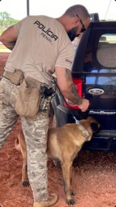 O cão Spark, do NOC/DPOE, demonstrou habilidades excepcionais na detecção de entorpecentes | Foto: Divulgação/Seape