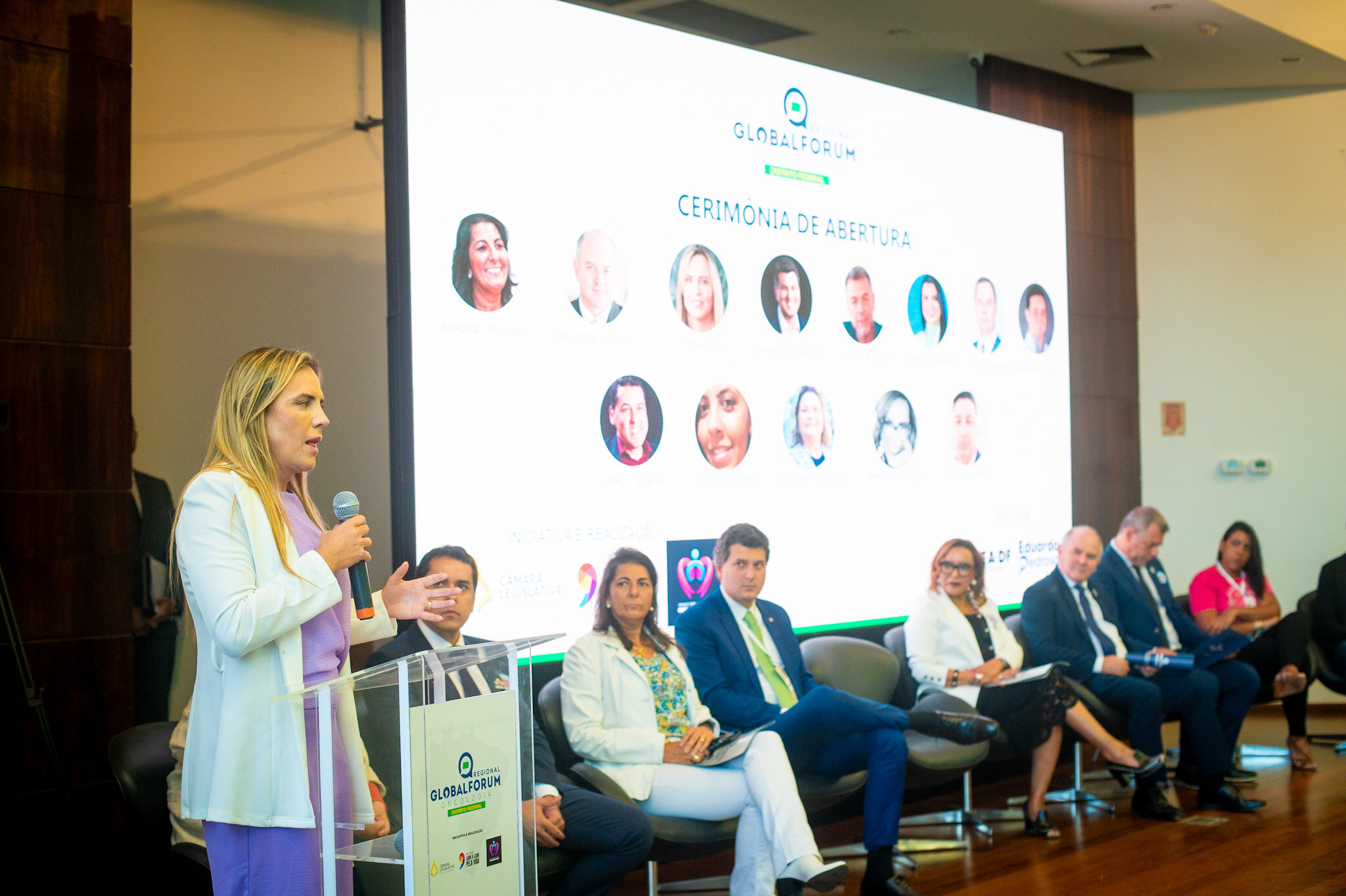A vice-governadora Celina Leão afirmou, na abertura do encontro: “A gente tem esse compromisso de melhorar todo dia. Temos que pensar diferente para termos resultados diferentes e políticas públicas de qualidade” | Foto: George Gianni/VGDF