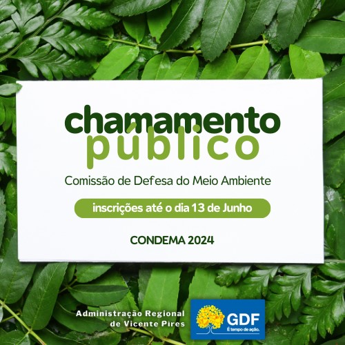 A Administração Regional de Vicente Pires, em conformidade com a legislação ambiental vigente no Distrito Federal, convida a população local para participar da formação da Comissão de Defesa do Meio Ambiente (Comdema) da região.