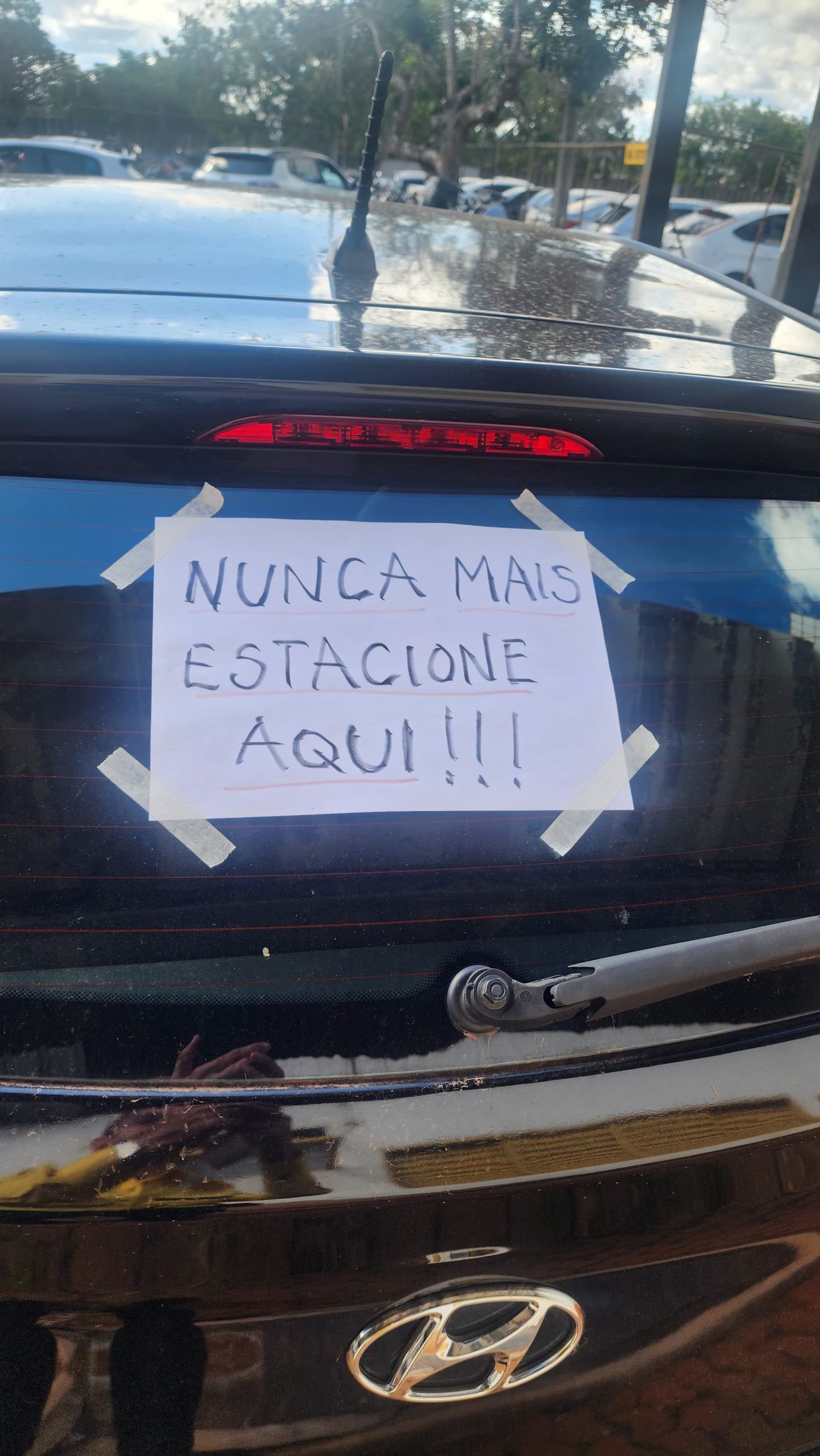 Mensagem no vidro traseiro do carro: barulho incessante perturbou a vizinhança | Foto: Divulgação/Detran-DF