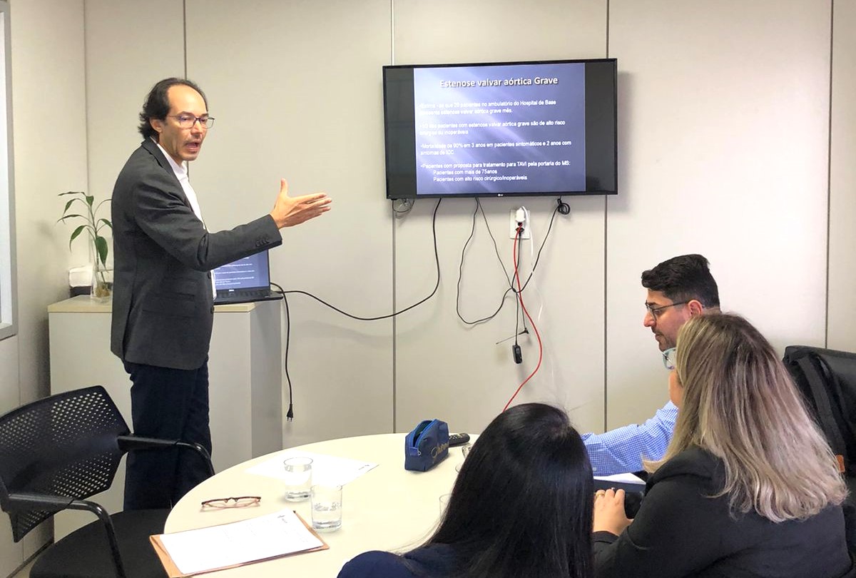 Na última terça-feira (30), o chefe da hemodinâmica do Hospital de Base do Distrito Federal (HBDF), Raphael Lanza e Passos, conduziu uma apresentação no Instituto de Gestão Estratégica de Saúde do Distrito Federal (IgesDF) sobre a implantação do tratamento da estenose valvar aórtica por meio do Tavi (implante transcateter de valva aórtica).