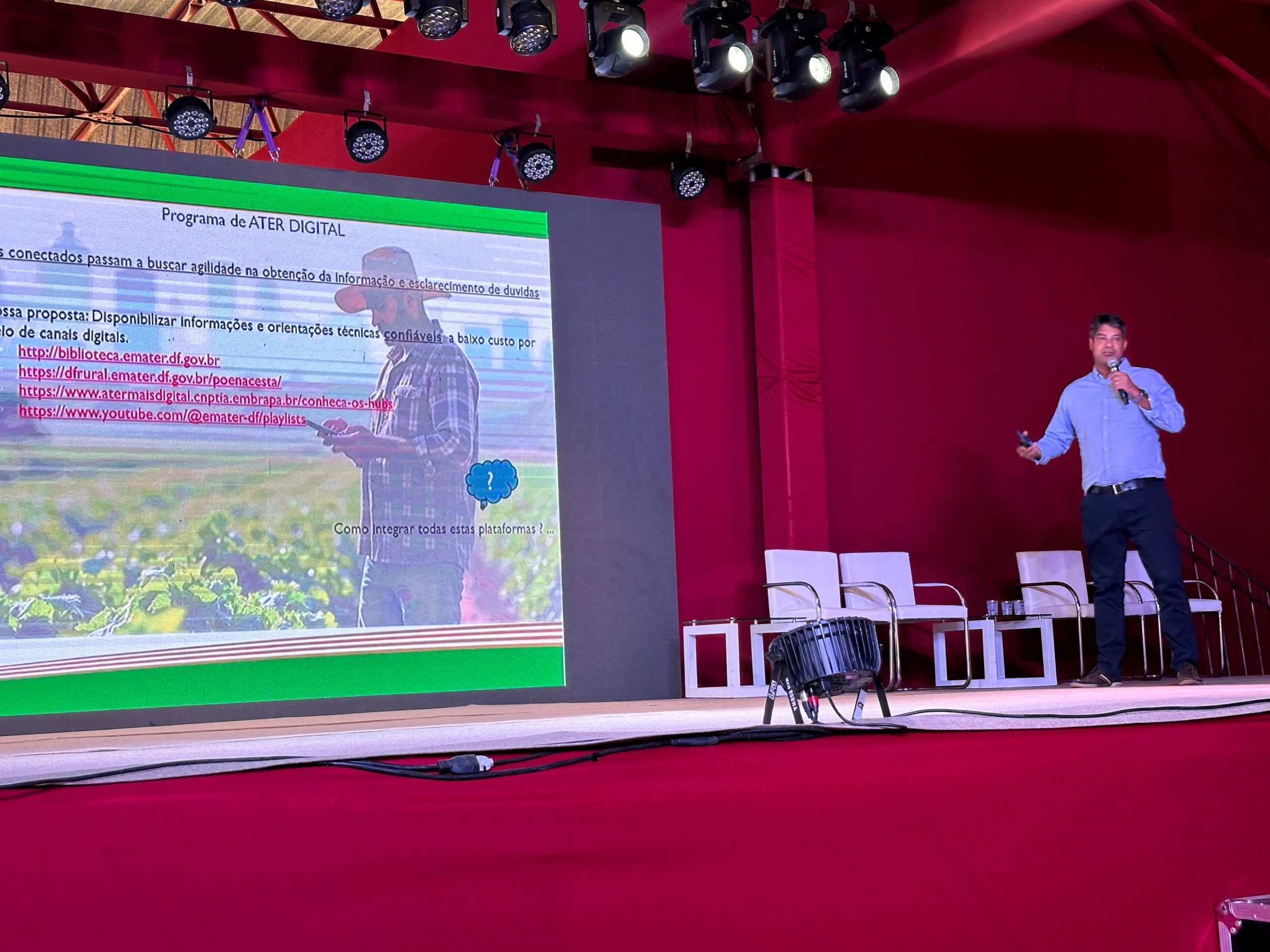 A programação da ExpoAbra, nesta quinta-feira (5), trouxe aos produtores rurais o painel Inovação Tecnológica no Agro. “A atividade é importante para que os produtores saibam como se apropriar de tecnologias e inovações e melhorar a produção agropecuária, a gestão e a comercialização dos produtos”, afirma o presidente da Emater-DF, Cleison Duval. Entre as experiências apresentadas estavam o programa Empreender e Inovar, da Emater-DF, que capacita e acompanha produtores e instituições do meio rural na gestão do negócio rural.
