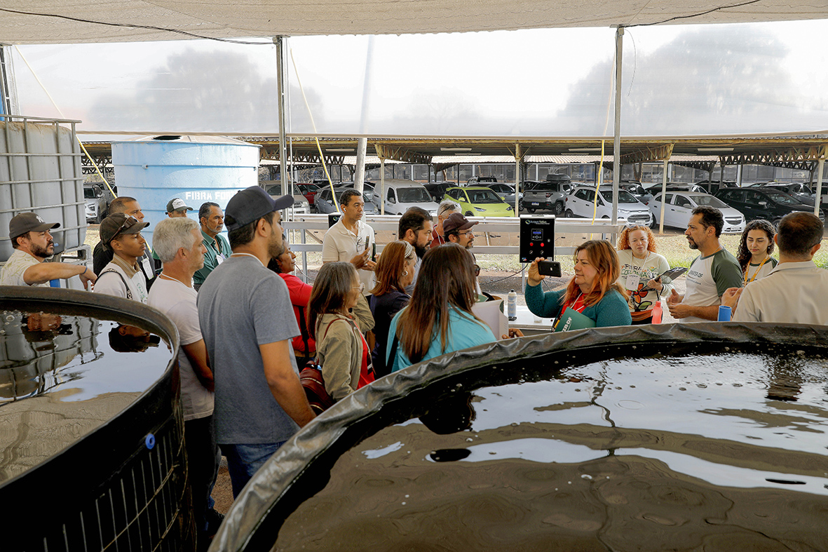 Na sequência, os participantes puderam observar de perto a importância do monitoramento da água e, em seguida, aprender sobre a utilização de filtros biológicos. A última etapa da atividade consistiu no detalhamento do manejo de sólidos na água, como restos de ração e dejetos dos peixes, entre outros.