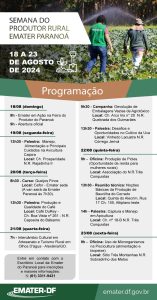 Produtores rurais da região do Paranoá participaram nesta quarta-feira (21) da palestra Desafios e Oportunidades no Cultivo da Uva, ministrada pelo coordenador do programa de fruticultura da Emater-DF, Felipe Camargo. A atividade foi realizada no Vinhedo Lacustre e fez parte da programação da Semana do Produtor Rural, organizada pela unidade local da Emater-DF no Paranoá, que vai até sexta-feira (23).