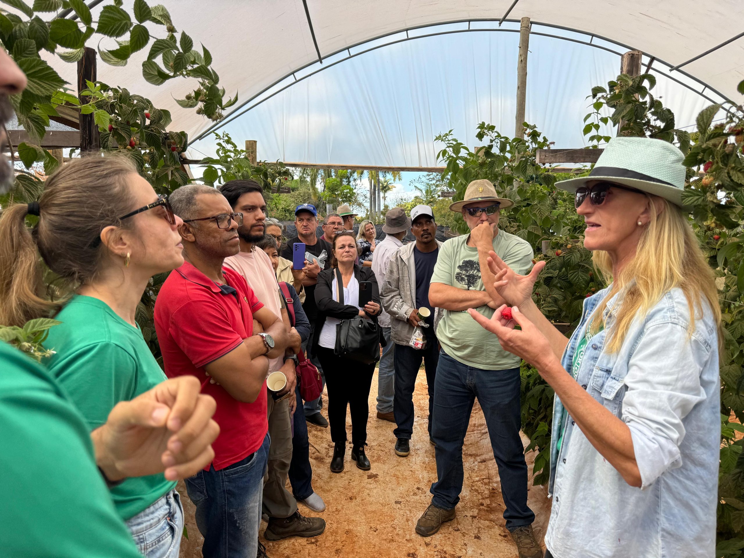 Com o tema “Introdução ao Cultivo de Frutas Vermelhas no Cerrado Brasileiro”, extensionistas da empresa explicaram as principais peculiaridades das frutas vermelhas | Foto: Divulgação/Emater-DF