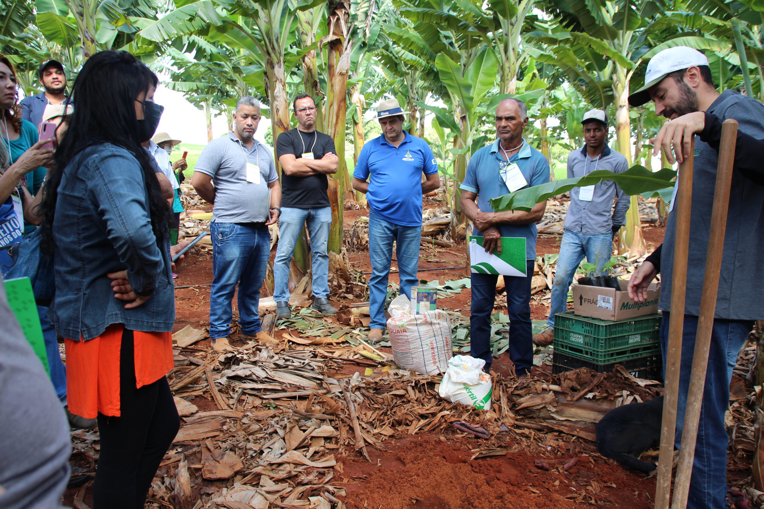 No curso, com diversas atividades práticas, os extensionistas Felipe Camargo, Marcelo Ruas e Daniel Oliveira apresentaram os tratos culturais da bananeira, desde o plantio até a colheita, com detalhes sobre como escolher o terreno, espaçamento entre plantas, profundidade das covas, cuidados com pragas e doenças, entre outros temas.