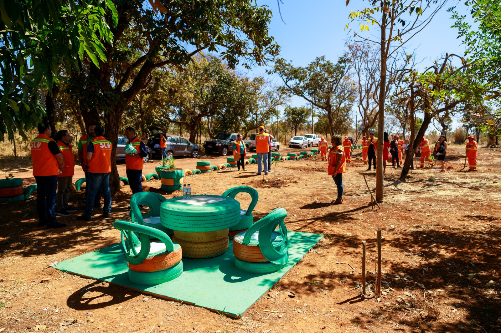 Na operação, 1.400 pneus velhos foram transformados em carrinhos, mesas e banquinhos para o lazer e o descanso da população e dos alunos da escola próxima ao ponto. Também foram plantadas 150 mudas de plantas nativas do cerrado e 200 mudas de flores.