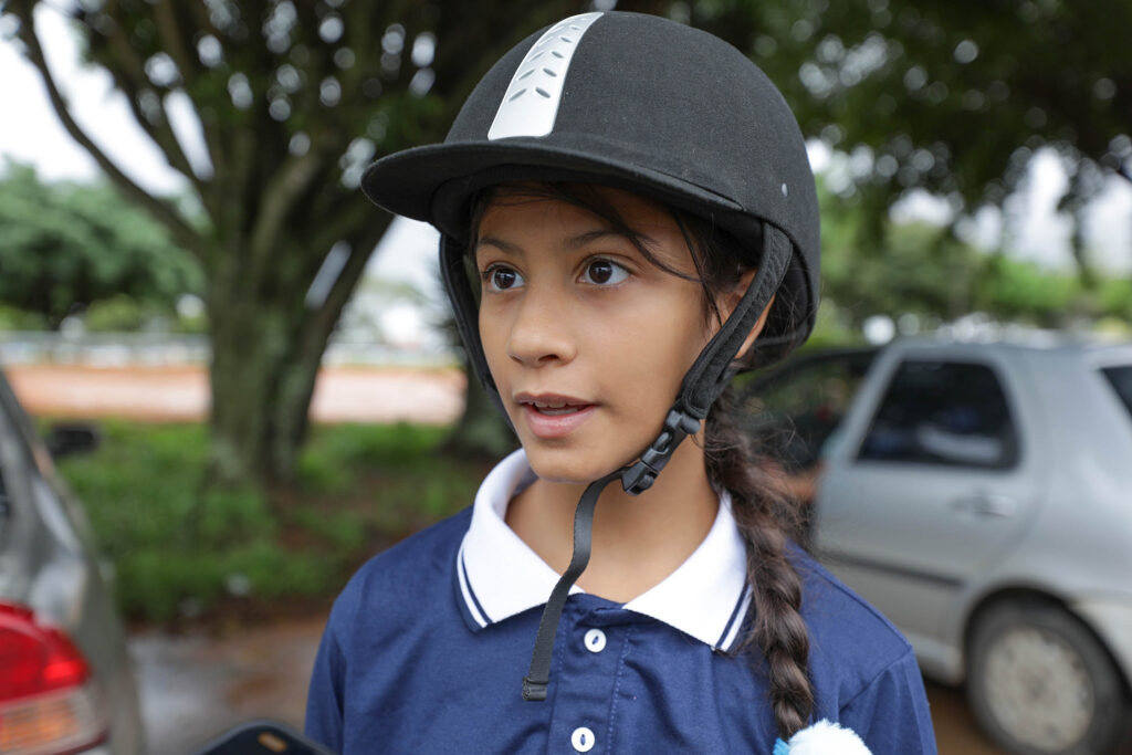 Ana Clara, de 8 anos, sempre foi apaixonada por cavalos e sonhava aprender o esporte
