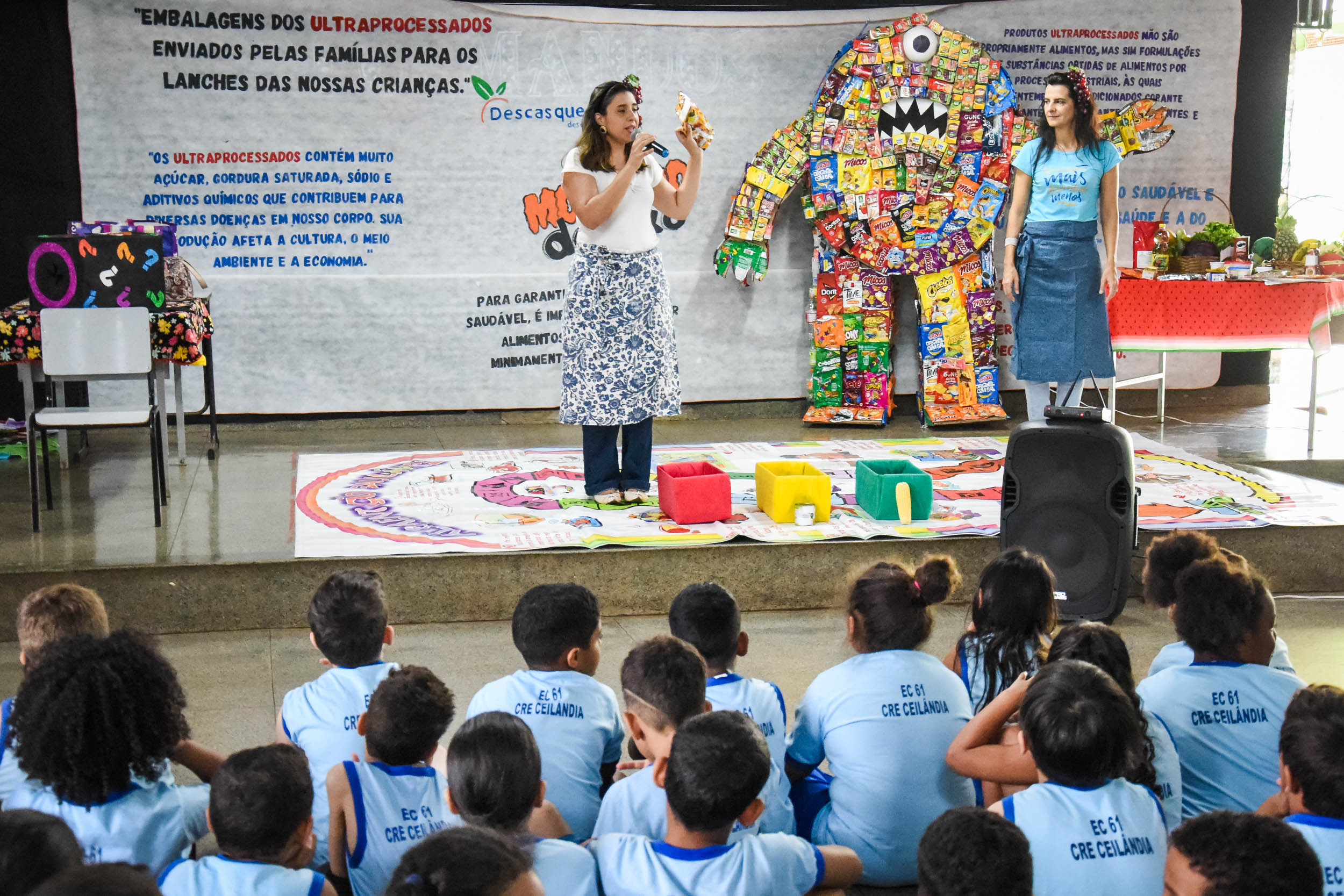Descasque mais, desembale menos. Esse é lema que deu nome ao projeto desenvolvido pela Escola Classe 61 de Ceilândia com o intuito de conscientizar os estudantes e famílias sobre a importância dos bons hábitos alimentares para a saúde. O corpo docente da instituição, que atende 764 alunos de 4 a 12 anos, desenvolveu a iniciativa ao perceber que os estudantes tinham o hábito de levar lanches com alimentos ultraprocessados.