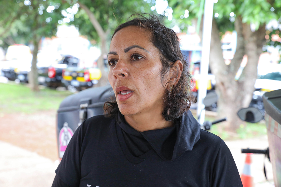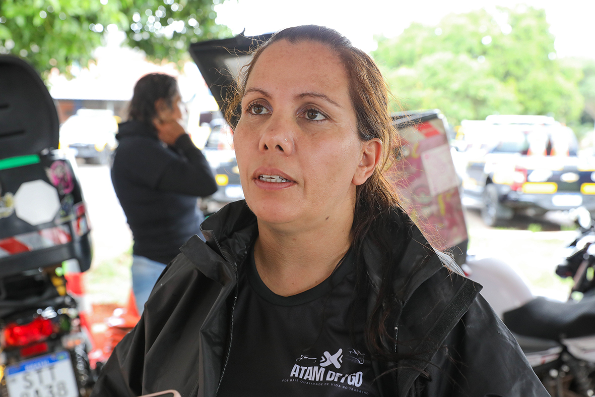 Motofretista e entregadora de aplicativo, Carolina Souza, 43 anos, estava muito empolgada com a possibilidade de mais uma capacitação. Desde que começou a atuar na profissão há cinco anos, ela sempre se envolve em projetos e treinamentos voltados à categoria.