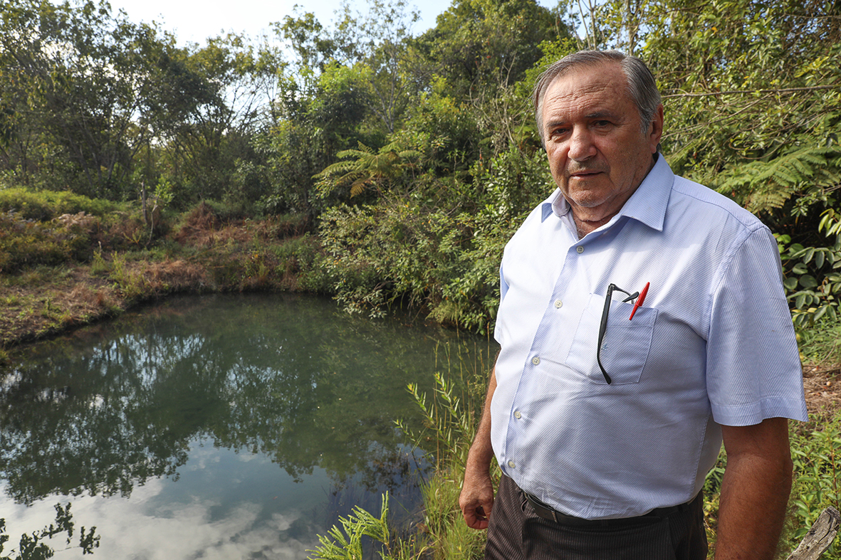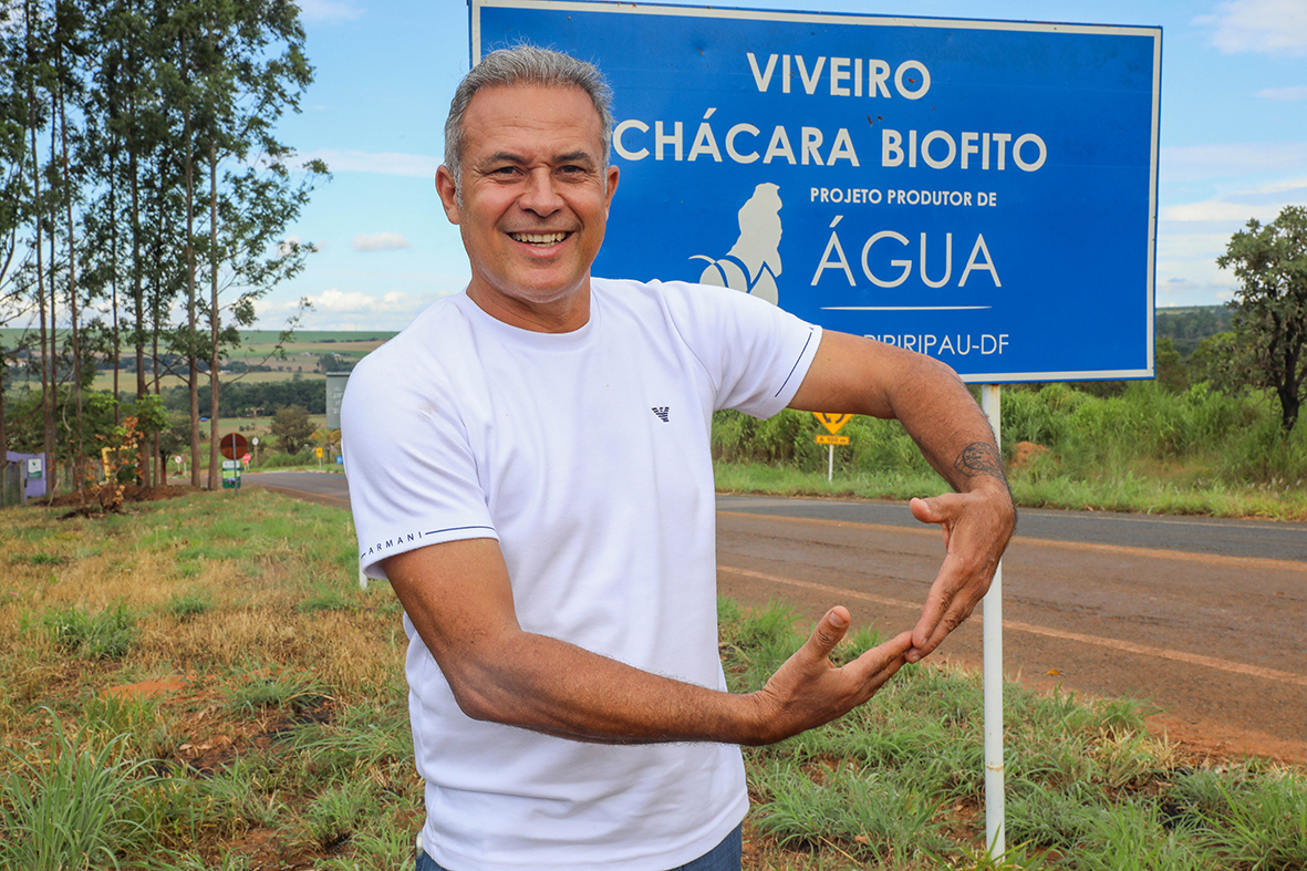 O produtor rural Joceilson Alves de Souza, 53 anos, foi um dos primeiros a aderir o projeto de conservação da água e do solo. Na época, ele estava criando uma agrofloresta na propriedade e encontrou na iniciativa o apoio técnico necessário. “O objetivo é proteger a terra para que a água da chuva seja retida no lençol freático, como uma esponja. Uma prova de que está dando certo é que este ano, pela segunda vez consecutiva, surgiu uma nascente, mostrando que tem água aqui embaixo”, conta.