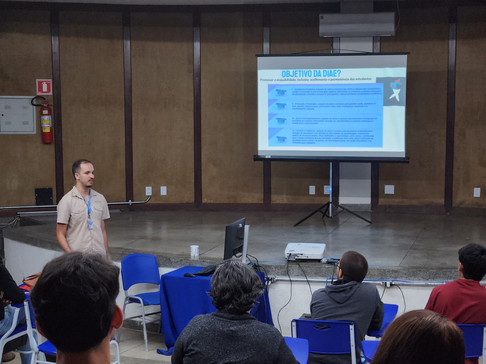 Alunos da UnDF assistem a palestra sobre a Política de Assistência Estudantil (PAE), que trata da concessão dos auxílios e bolsas universitárias | Foto: Divulgação/UnDF