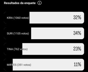 O Zoológico de Brasília anunciou o nome da fêmea de suricato, batizada pelo público que participou de uma enquete no Instagram. Com a maioria dos votos, o nome escolhido foi Suri. O batizado do novo animal recebeu, em 24 horas, mais de 3 mil votos e o resultado foi divulgado nesta sexta-feira (23). Foram registrados 3.278 votos, dos quais 34% escolheram o nome vencedor.