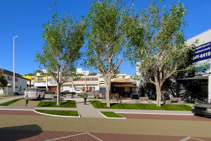 Está prevista a criação de espaços compartilhados entre pedestres e ciclistas, sinalização tátil a partir das paradas de ônibus e em todos os blocos comerciais, além de praças com mais arborização e mobiliário urbano