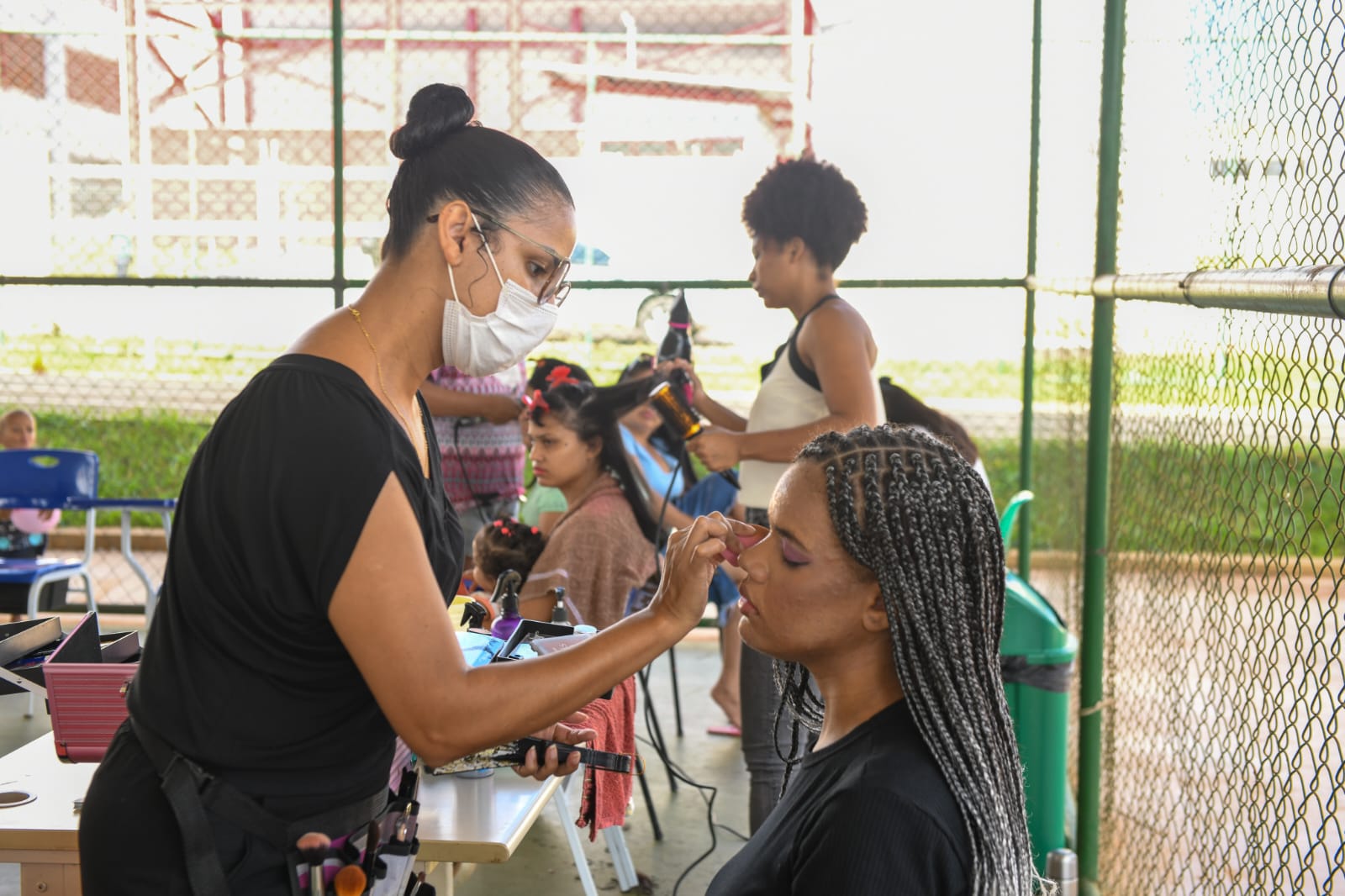 As mulheres chegaram cedo à unidade do Itapoã para aproveitar os serviços de salão de beleza, como hidratação, cortes e tranças. Profissionais de manicure/pedicure, sobrancelhas, maquiagem e massoterapia também estavam disponíveis para atendimento às participantes.