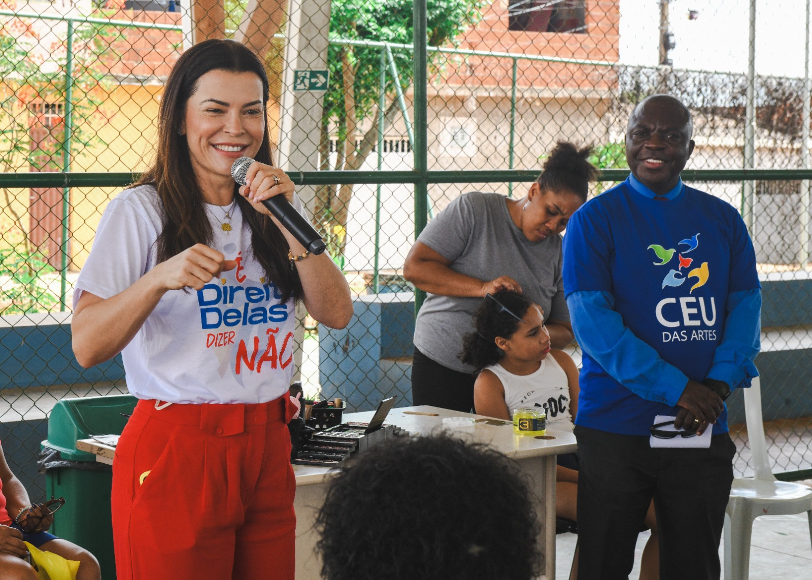 A secretária de Justiça e Cidadania, Marcela Passamani, esteve no local para cumprimentar as mulheres presentes. “Eu estou feliz em estar conversando com vocês, mulheres, e vendo vocês desfrutando aqui do CEU das Artes. Usufruam de todos os nossos serviços, tragam as crianças, chamem os vizinhos e amigos. Nossas equipes estão prontas para inscrevê-los em ações que esses locais estão oferecendo”.