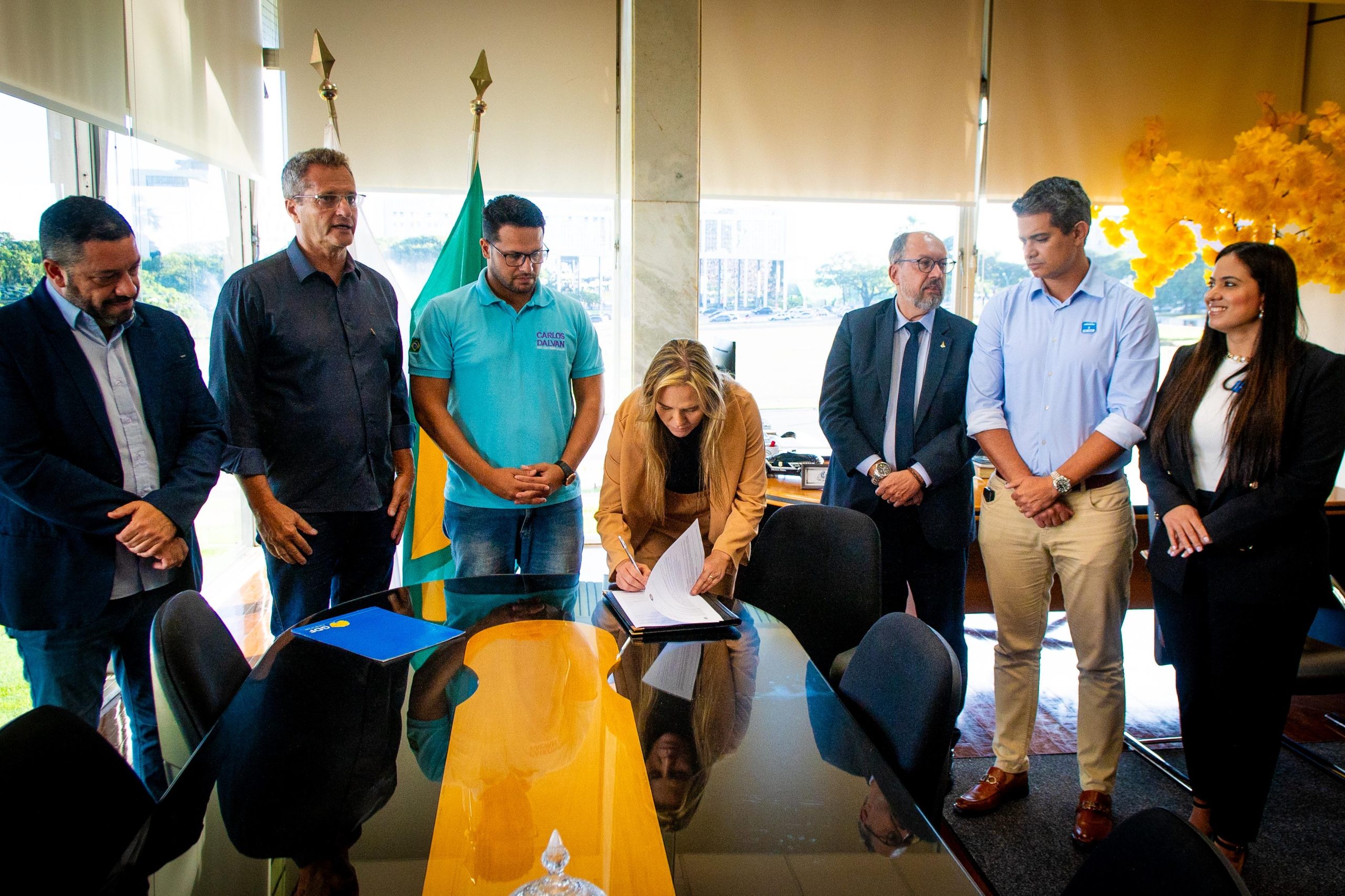 A governadora em exercício Celina Leão assinou, nesta quinta (23), a licença de instalação para um empreendimento no Recanto das Emas, que vai beneficiar mais de 22 mil pessoas | Foto: George Gianni/VGDF