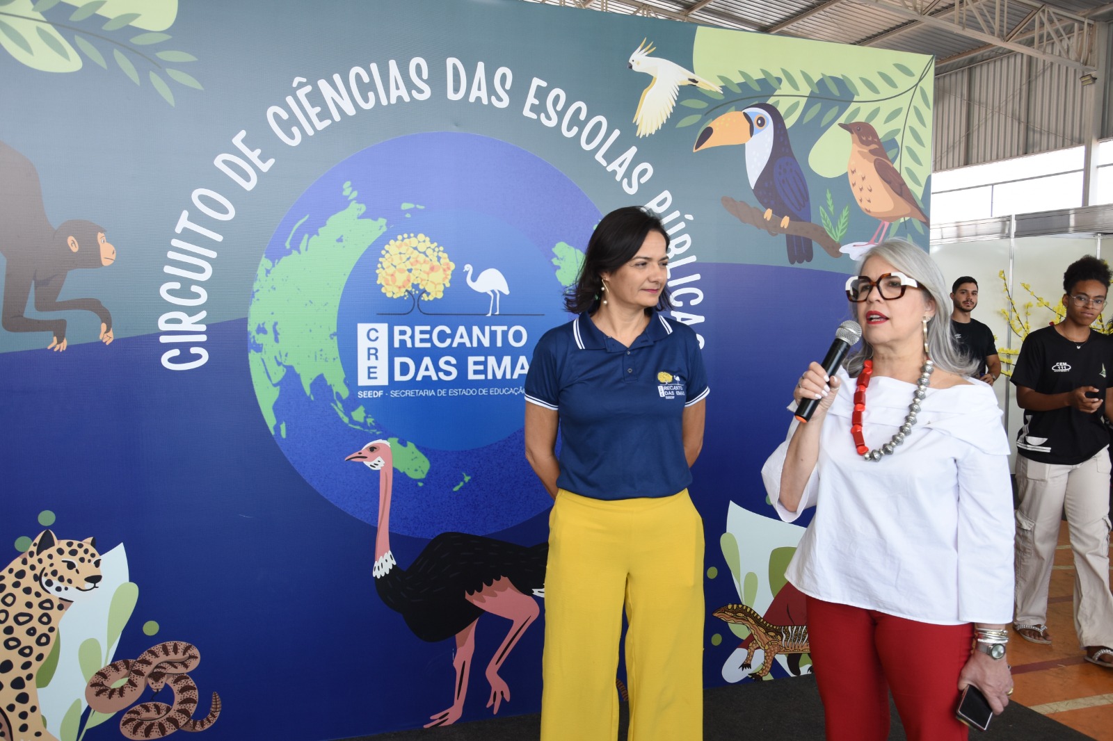 A secretária de Educação, Hélvia Paranaguá, e a coordenadora da Regional de Ensino do Recanto das Emas, Mariana Ayres, comemoraram o sucesso da etapa do Circuito de Ciências na RA | Fotos: Mary Leal/Ascom SEEDF