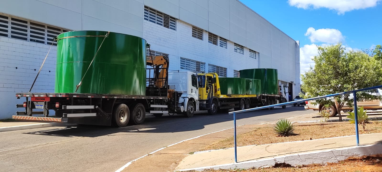 O reservatório metálico chegou à ETA Planaltina dividido em quatro segmentos, que foram transportados por três caminhões | Foto: Divulgação/Caesb