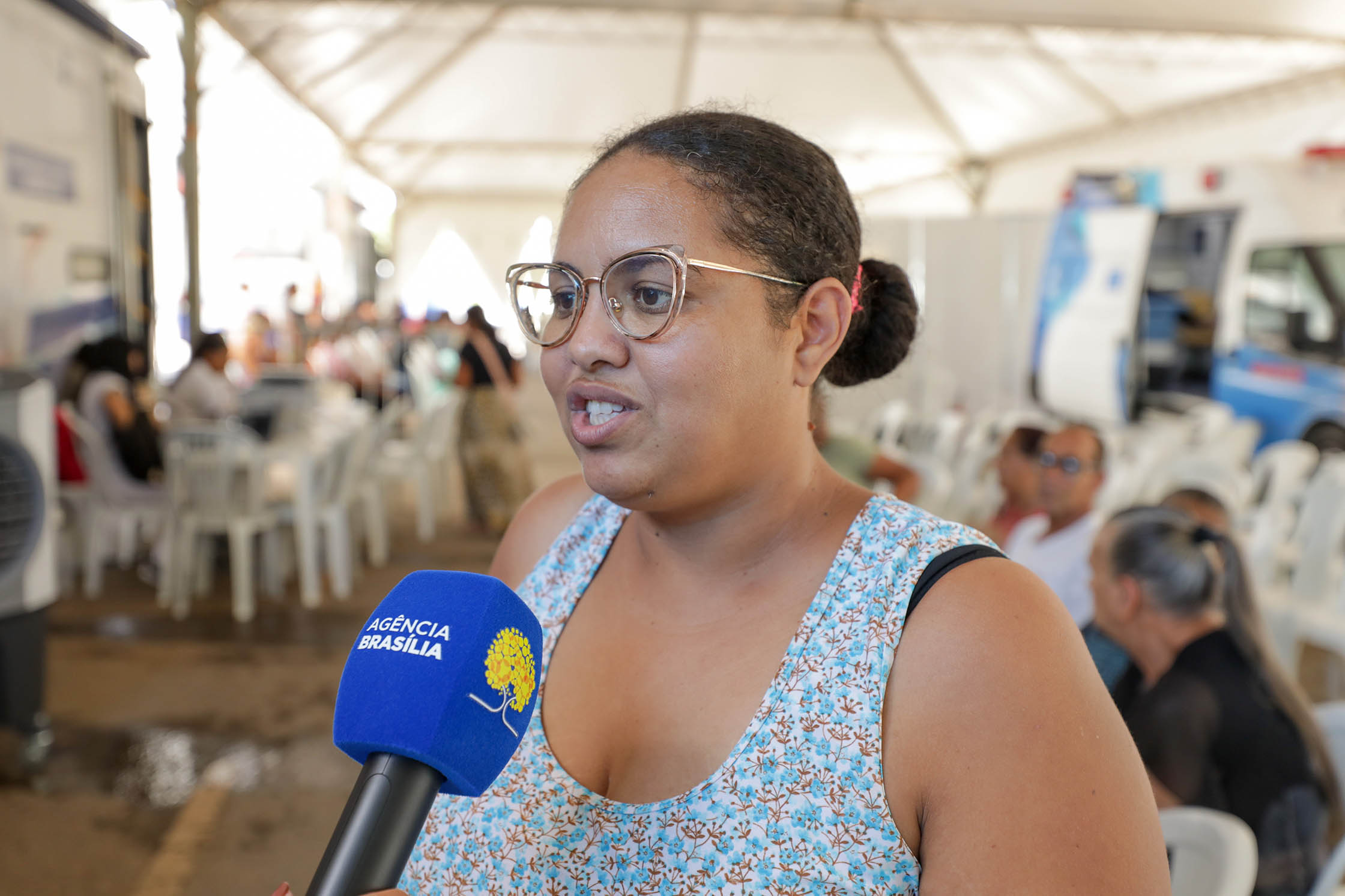 A moradora da Estrutural Camila Santos de Melo, 37 anos, saiu satisfeita com a rapidez durante os atendimentos nas especialidades de clínica geral e ginecologia. “Eu estava passando por umas crises de ansiedade e foi muito importante para mim ter acesso aos serviços. Aproveitei também para fazer um check-up”, comenta a dona de casa. “Quando a gente tem a possibilidade de melhorar a nossa saúde, a gente tem que aproveitar”, acrescenta.