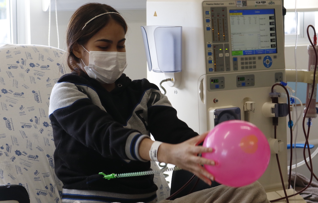 A médica ressalta que aliar a fisioterapia à hemodiálise é positivo: “Esse também é um momento de descontração, para distrair as crianças e trazer um reforço ao tratamento”.