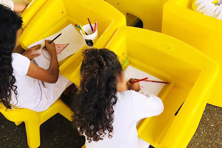 Crianças desenham durante visita natalina a internos promovida pela Seape e instituições religiosas na segunda-feira (5); próximas estão marcadas para os dias 12 e 19 | Fotos: Divulgação/Seape