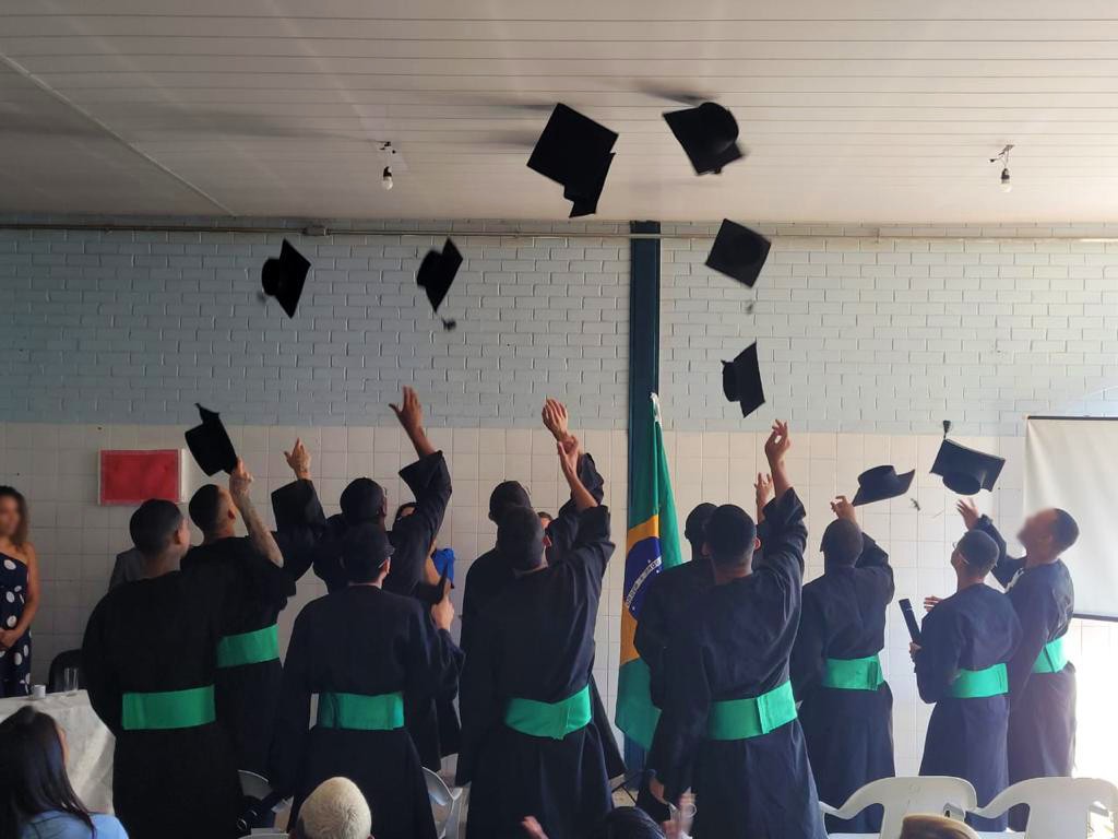Onze jovens da Unidade de Internação do Recanto das Emas (Unire) se formaram na tarde desta segunda-feira (3) | Foto: Divulgação/Ascom Sejus-DF