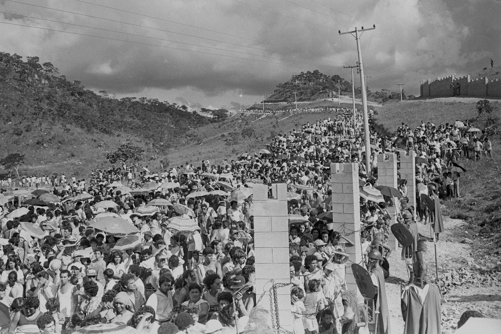 A primeira montagem ocorreu em 1973, idealizada pelo padre Aleixo Susin, falecido em 2021, aos 92 anos. À Agência Brasília, em 2017, ele revelou que viu “três morros unidos que se enchiam de gente”. Logo depois, falou com os fiéis e marcou procissões saindo de três igrejas de Planaltina, das quais era pároco na época. O ponto final do encontro foi o pé do Morro da Capelinha, onde ocorreu a primeira montagem da via-sacra da região administrativa.