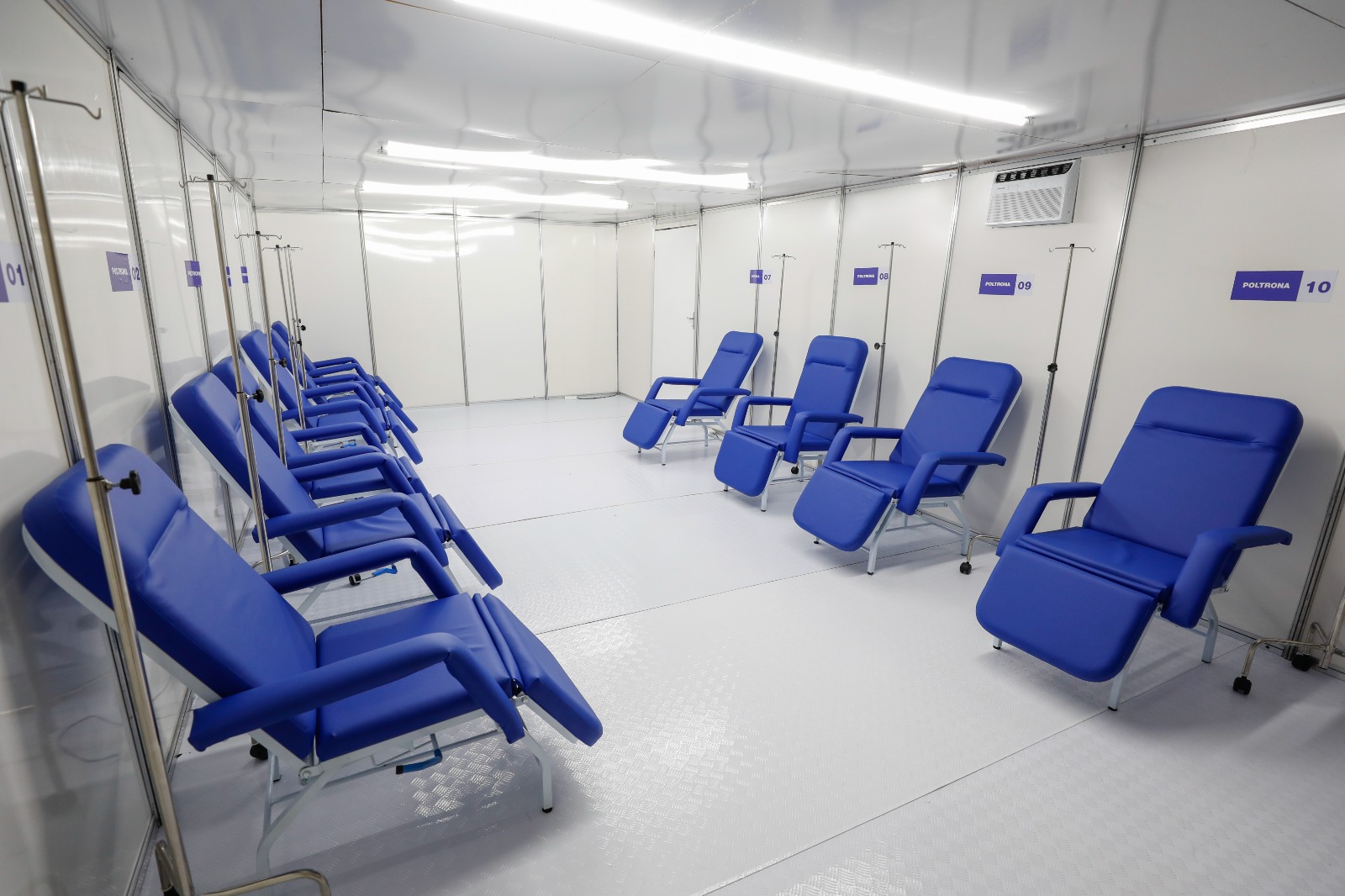 As novas instalações são amplas e divididas, com consultórios, espaço de triagem, salas de medicação e equipamentos essenciais, incluindo aparelhos de ar-condicionado para a climatização do ambiente. Toldos de revestimento também foram instalados, para garantir a proteção necessária aos pacientes e profissionais de saúde que utilizarão esses espaços.