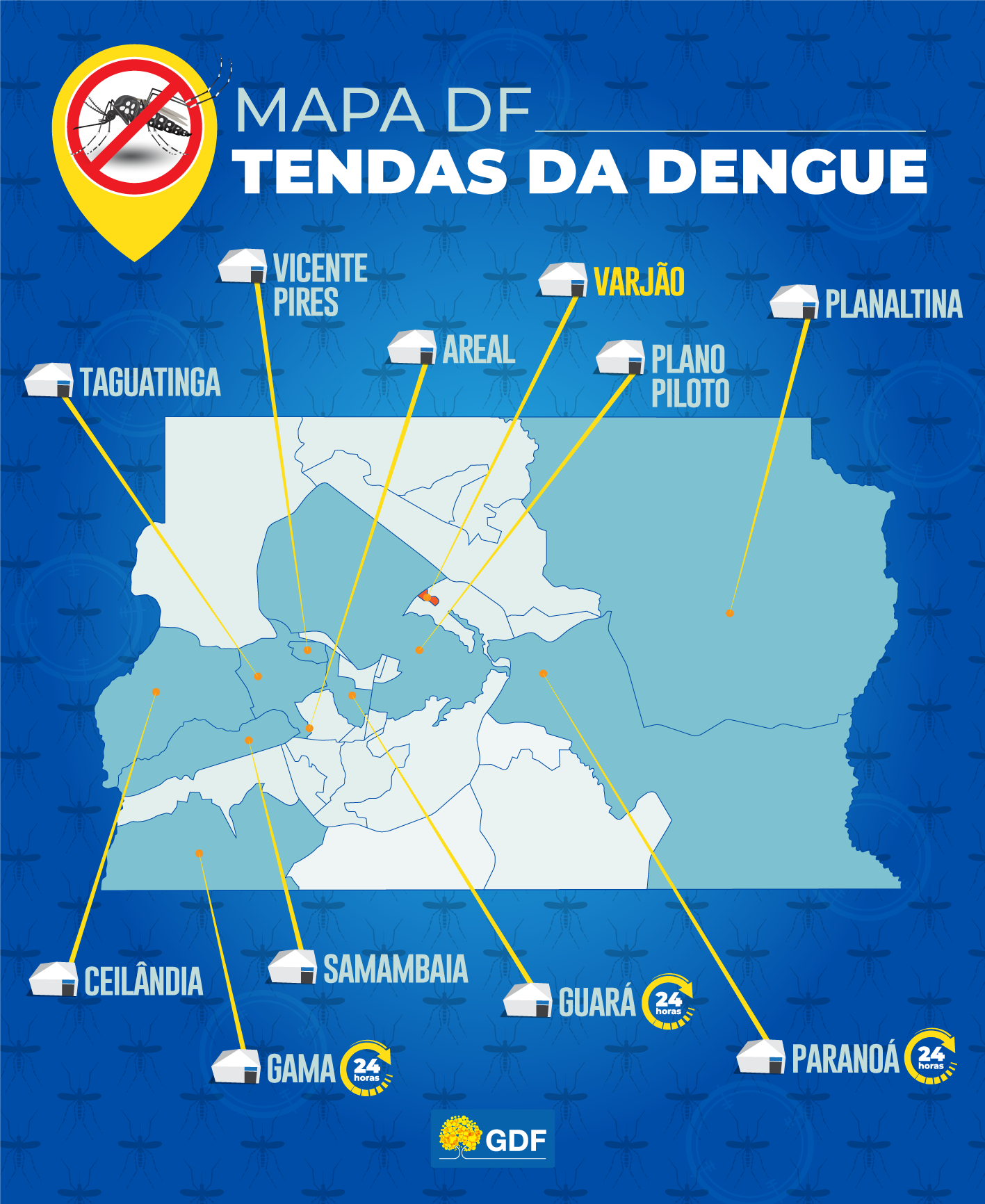 Mais uma tenda de acolhimento para pacientes com dengue foi entregue neste sábado (27), desta vez no Varjão. A estrutura está montada no estacionamento da Unidade Básica de Saúde (UBS) 1 da região, ponto estratégico para proporcionar atendimentos mais rápidos à população e desafogar a pressão sobre o Sistema Único de Saúde (SUS). Semelhante a um hospital de campanha, esta é a 10° unidade entregue pelo Governo do Distrito Federal (GDF) na força-tarefa para mitigar os impactos da dengue no DF.