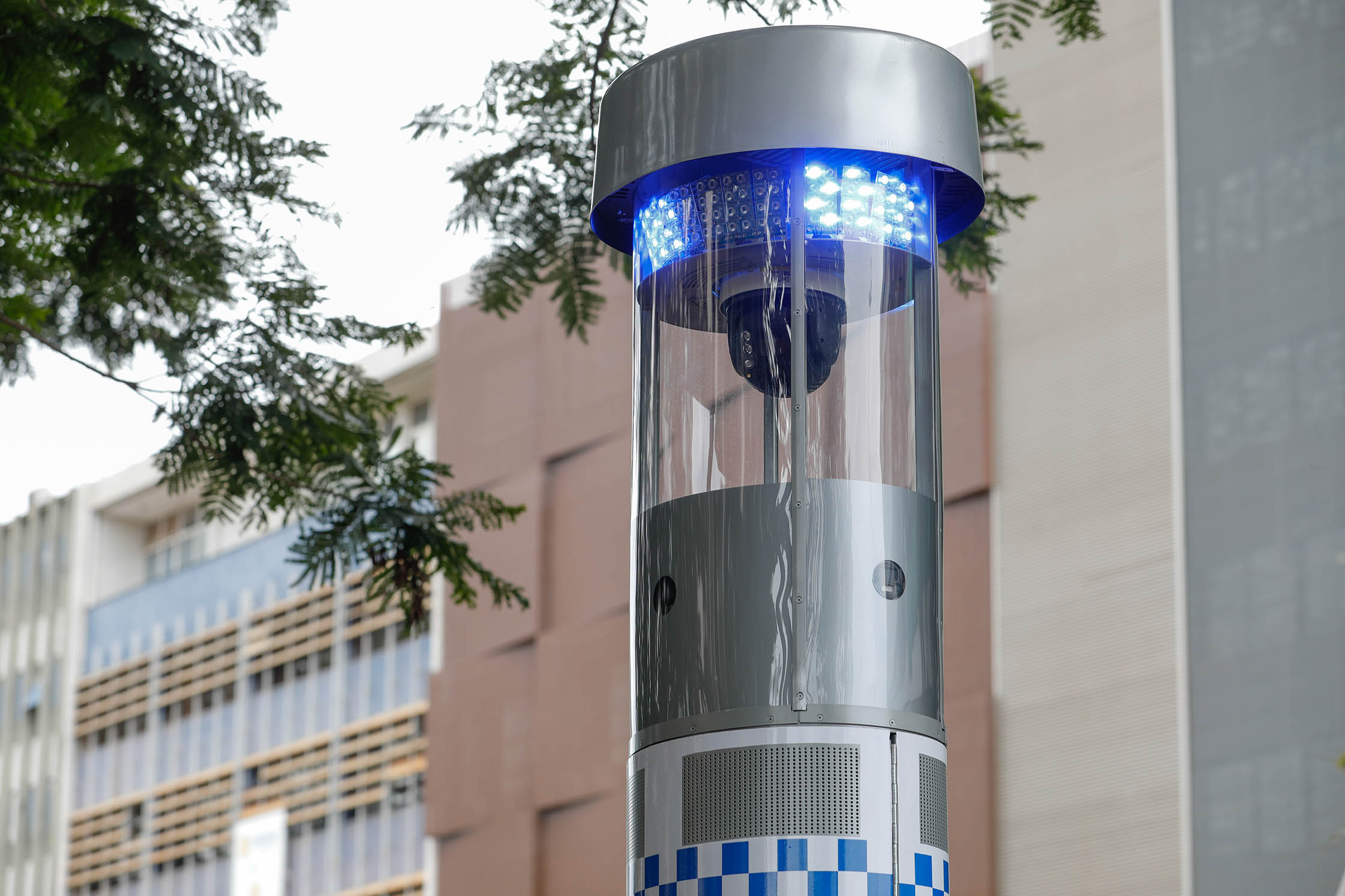 Os totens possuem quatro metros de altura e reúnem várias funcionalidades em um único dispositivo, incluindo estrutura robusta, sistema de giroflex que remete às viaturas policiais | Foto: Lúcio Bernardo Jr./Agência Brasília