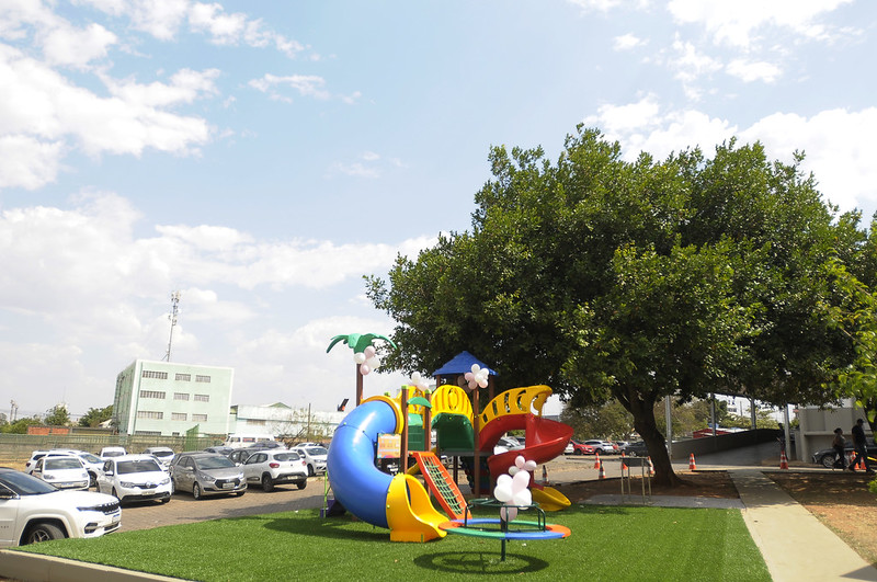 Na semana do Dia da Criança, a Secretaria de Saúde do Distrito Federal (SES-DF) inaugurou o primeiro dos nove parquinhos em unidades da rede. Nesta quarta-feira (8), o Hospital Regional de Ceilândia (HRC) foi o primeiro a receber o espaço infantil.