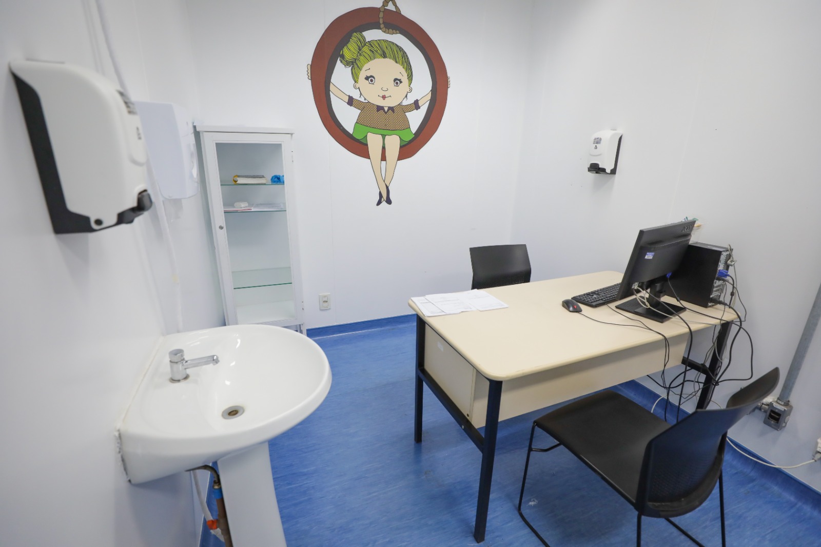 Também foi reservado um banheiro exclusivo para crianças dentro da sala da pediatria. Na recepção há ainda um fraldário para atender as necessidades dos bebês e uma brinquedoteca para distrair os pequenos enquanto aguardam o atendimento.