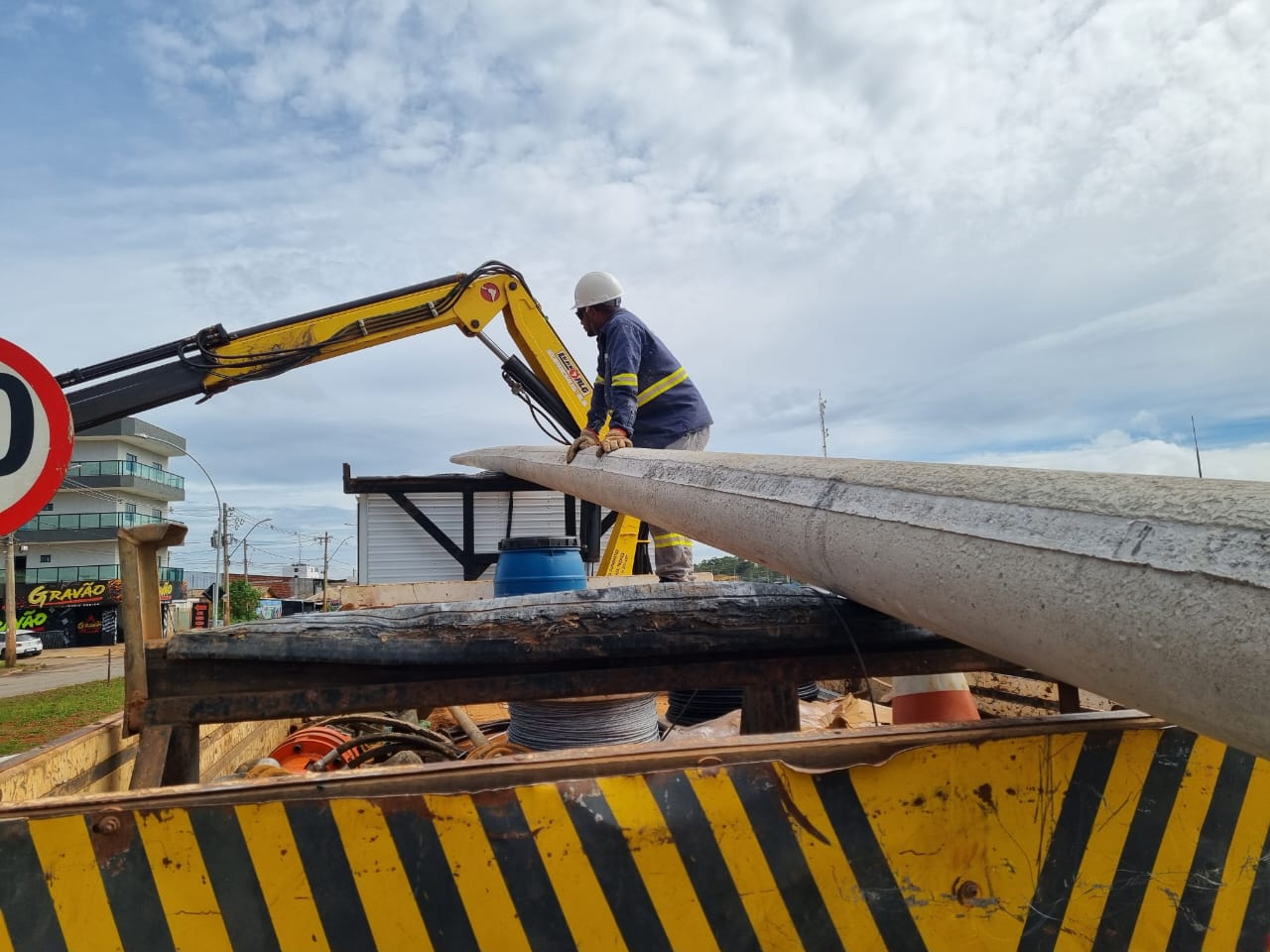 Obras de instalação dos novos equipamentos: luminárias oferecem economia e mais eficiência | Foto: Divulgação/Administração Regional do Riacho Fundo II