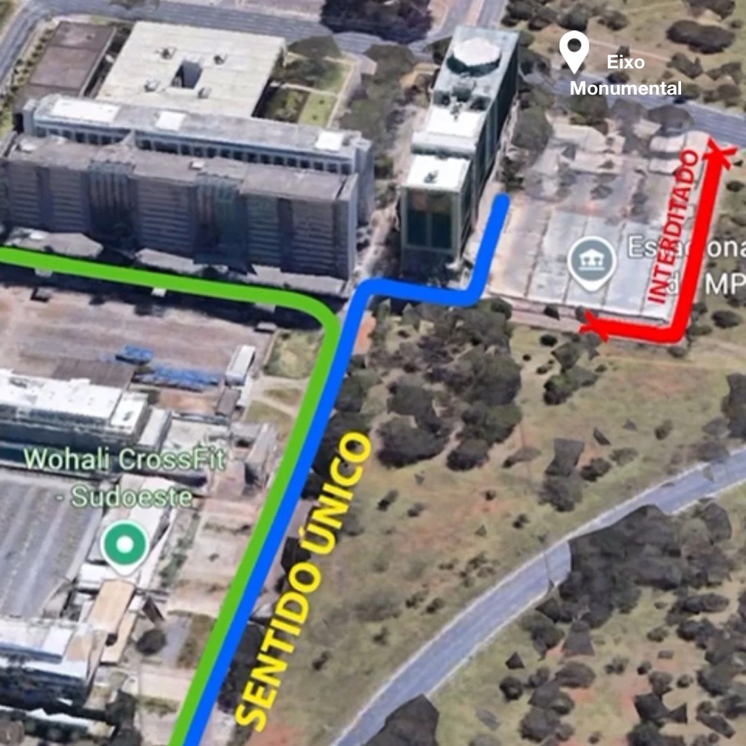 Atenção, motoristas que trafegam diariamente pelas vias que circundam o Tribunal de Justiça (TJDFT) e o Ministério Público do Distrito Federal e Territórios (MPDFT). A partir desta quinta-feira (19), a via que passa ao lado do estacionamento do MPDFT dando acesso ao Eixo Monumental será interditada pelo prazo de 30 dias para a concretagem da pista. Assim, quem deseja acessar o Eixo Monumental deve usar obrigatoriamente a via principal do Setor de Indústrias Gráficas (SIG).