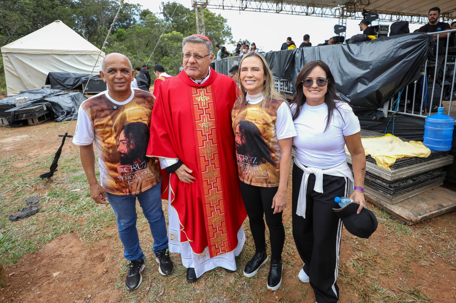 “É um dia de muita fé, de milagre, em que as pessoas se renovam. Sempre falo para quem não conhece a experiência para vir aqui, ver o momento doloroso de Jesus. É algo muito especial, é um momento em que as pessoas se unem para orar e se restabelecer novamente”, declarou a governadora em exercício, Celina Leão. “É um evento que tem 100% de apoio do GDF. Esse ano tivemos o maior número de policiais da história, ou seja, é um lugar onde as famílias podem ir com tranquilidade. Tem todo um aparato de policiais militares, policiais de serviço, Corpo de Bombeiros, Conselho Tutelar.”