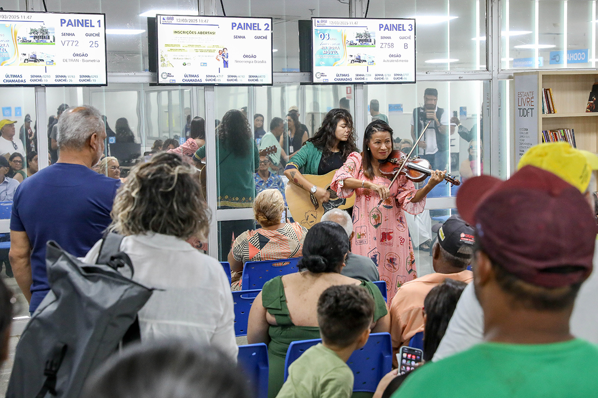 O atendimento no Na Hora da Rodoviária do Plano Piloto teve uma trilha sonora especial nesta quarta-feira (12). Com uma apresentação musical, a violinista Kathia Pinheiro retornou à unidade para retribuir a presteza e a gentileza que recebeu da equipe durante atendimento no mês passado. “Eu estava tentando resolver um problema há três meses e, em apenas 15 minutos, eles encontraram a solução. Fiquei muito emocionada e feliz”, conta Kathia.
