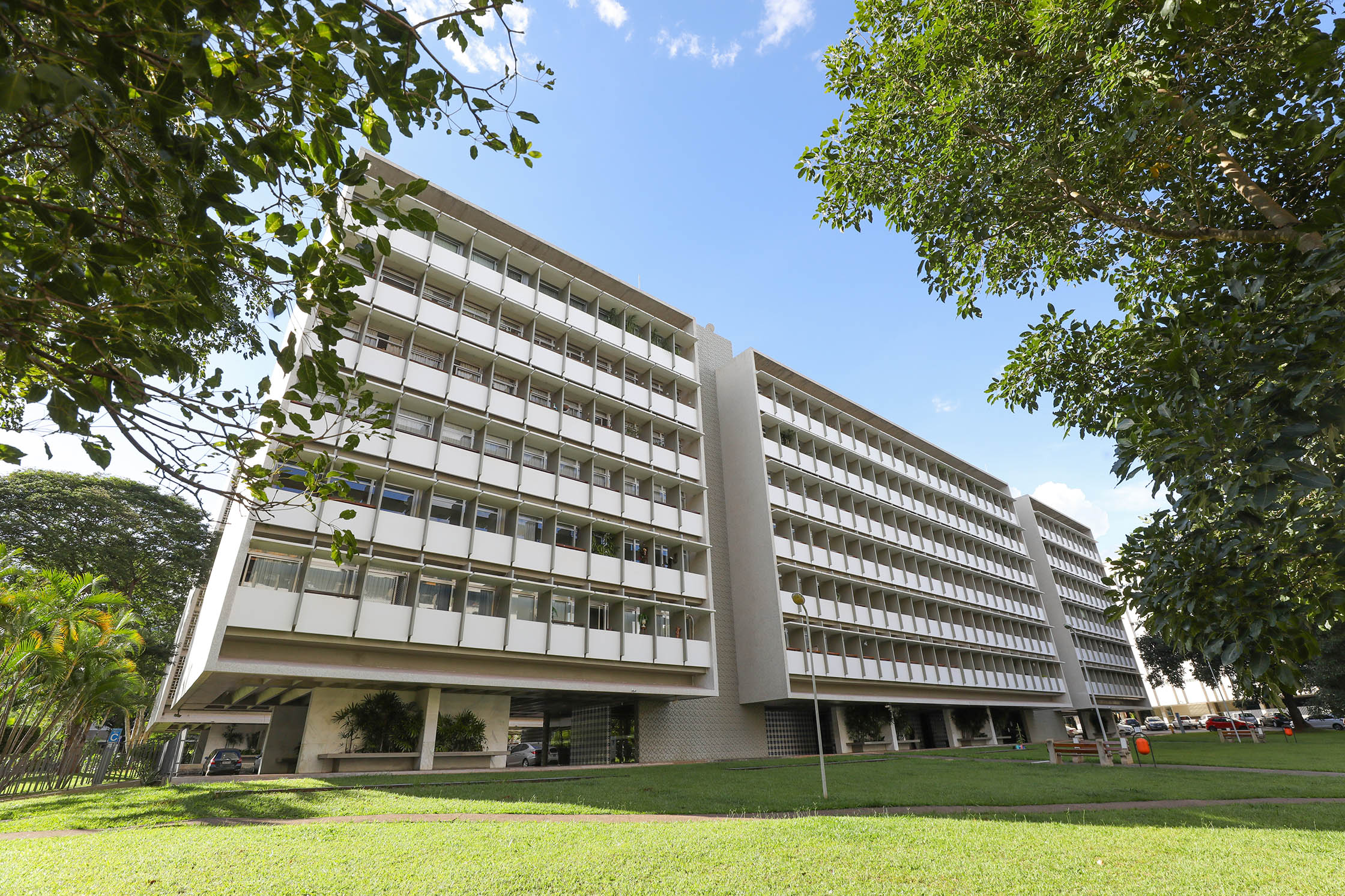 Superquadras e setores de comércio e de diversões, por exemplo, compõem a identidade única da capital do país. O bloco C, da SQS 210, conquistou o Selo CAU/DF, que reconhece o valor histórico das edificações não monumentais de Brasília | Foto: Joel Rodrigues/Agência Brasília