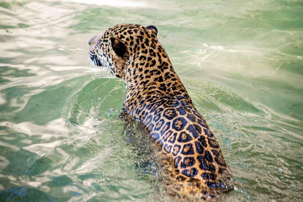 As onças-pintadas são conhecidas pela afinidade natural com a água e pela habilidade de nadar. A introdução do tanque de água é essencial para proporcionar um ambiente que estimule tanto o aspecto físico quanto o mental dos animais.