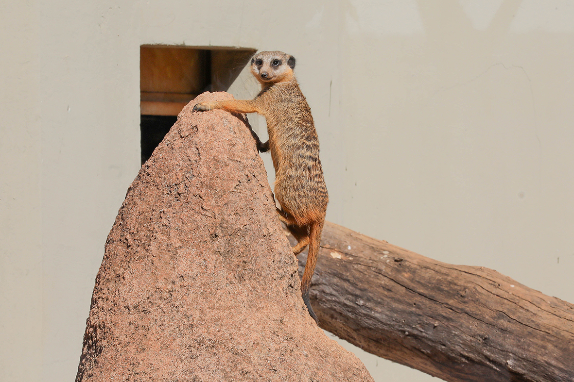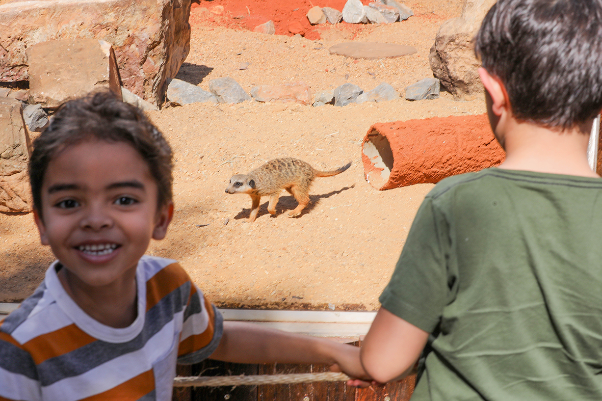 É a primeira vez que o Zoológico do DF recebe um casal de suricatos, que encantam o público com seu comportamento peculiar e social. Informações detalhadas sobre esses animais podem ser encontradas nas novas placas que, espalhadas pelos diversos recintos do zoo, têm acessibilidade em Braille e abordam aspectos de cada espécie habitante local.