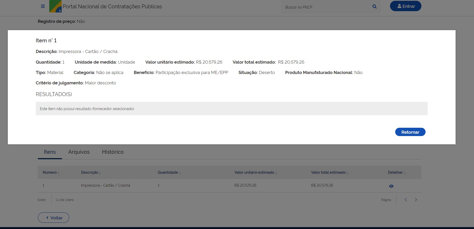 | PE nº 53 | Registro de Preços para futura aquisição de kit de manutenção para impressora. (Repetição do item 11 fracassado no Pregão Eletrônico nº 47/2020 SSP-DF). | 16/11/2020 | ||||||